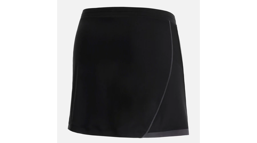 Perform anyagból készült sportszoknya, oldalsó hálós betétekkel a fokozott légáteresztő képesség érdekében. A rugalmas anyagból készült alsónadrág melegen és kényelmesen tartja a lábakat, míg a szegély stílusos megjelenést kölcsönöz.